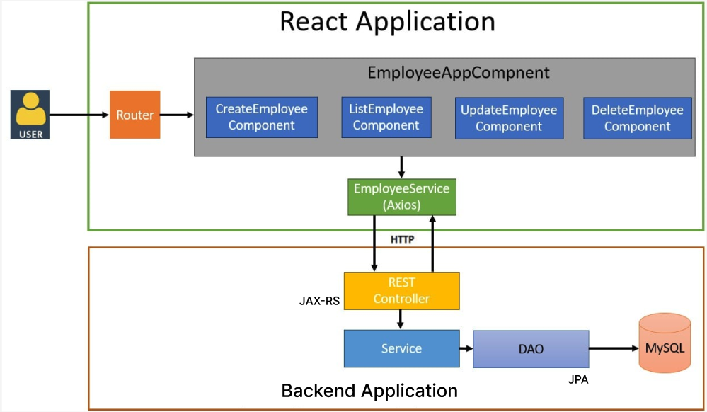 Une application ReactJS, qui est lancé sur le serveur http://localhost:5173/ et qui contacte localhost:8080/api/hello